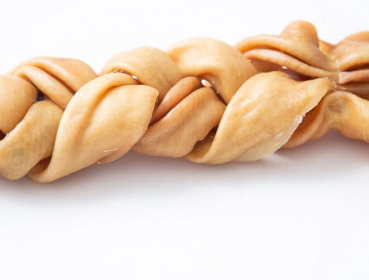 The braided pork skin is a great chew for middle of the road chewers. This chew can help clean your dog's teeth and gums, removing tartar...