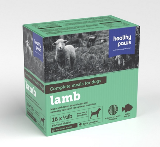 Our lamb formula contains wholly antibiotic and hormone-free lamb trim and organs sourced from a small producer in Canada.
