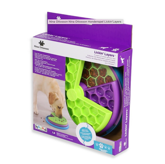 Lickin' Layers is a Level 2 dog puzzle game from Nina Ottosson by Outward Hound. Increase the challenge by freezing Lickin' Layers with natural yogurt and...