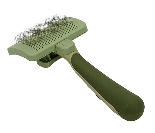 The Safari Self-Cleaning Cat Slicker features gentle, stainless steel pins that retract for easy cleanup. Frequent brushing helps prevent hair balls and enhances the coat's natural luster. Brush in...