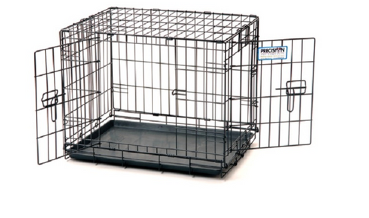 The Precision Pet ProValu 2 Door Wire Crate is the perfect tool for house training your furry friend or simply providing some refuge within your busy home. It features a patented 5-Point Locking System that eliminates any gaps in the top, sides, and middle of the door increasing the strength and safety of the door system. A rust-resistant electro-coat finish helps maximize the life of the crate. Includes a durable, removable polypropylene pan for easy cleaning and a divider panel to adjust the crate size as your pet grows. No assembly required, it easily folds flat for storage or transport.