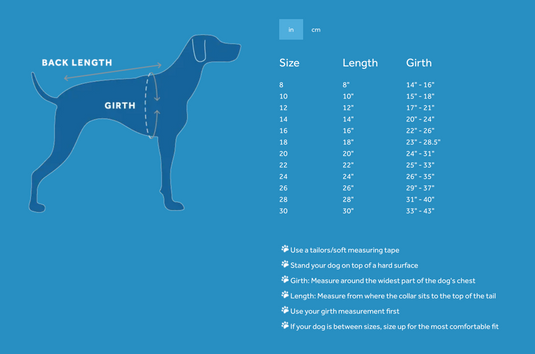 The Drift Coat was designed specifically with cold-weather canine explorers in mind, offering a waterproof fabric outer layer and cozy fleece inner lining for warmth. The T-fit shape provides a secure and adjustable fit, while the back zipper means you can easily access their harness. Don't let winter stop the adventure!