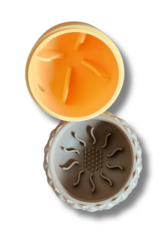 The Nutty Pod is a two-in-one interactive toy. You can use it as a bobble feeder or as 2 mini bowls. This is great for rescues because it's something they can actively work on and play with or lick. The unique shape allows The Nutty Pod to bounce in different directions when tossed by your dog.