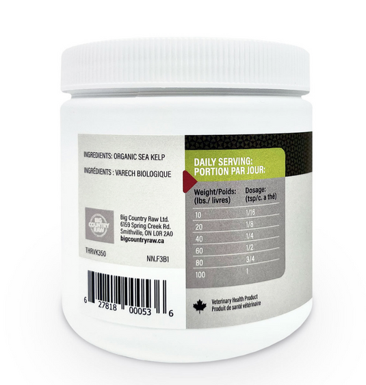 Do not add to food that already include kelp, or another source of iodine. Do not use in pregnant or lactating animals Do not use in animals with thyroid disease and not for long term use, unless directed by a veterinarian. Store out of direct sunlight. Keep out of reach of children. No refrigeration required.