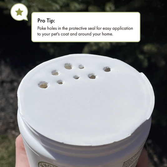 Can be applied to pet's coat. Can also be sprinkled around living quarters for relief against biting insects.