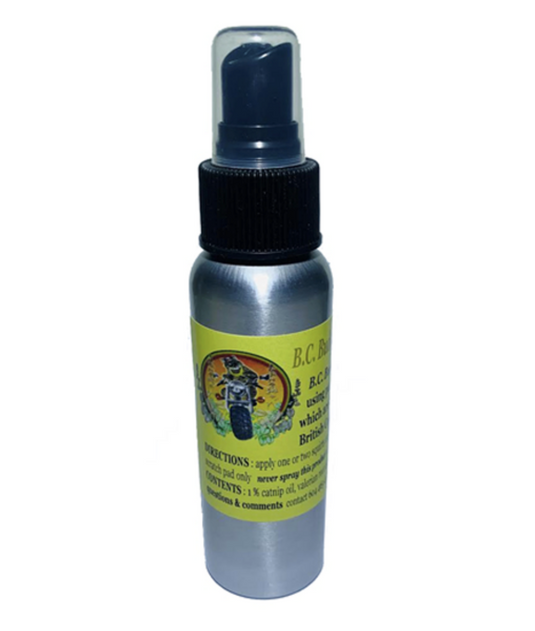 BC Buddy Herbal Blendz MX aluminum spray bottle contains a mixture of catnip and valerian root oils with water. Essential oils produced from plants grown and harvested in Canada, steam distilled/e...